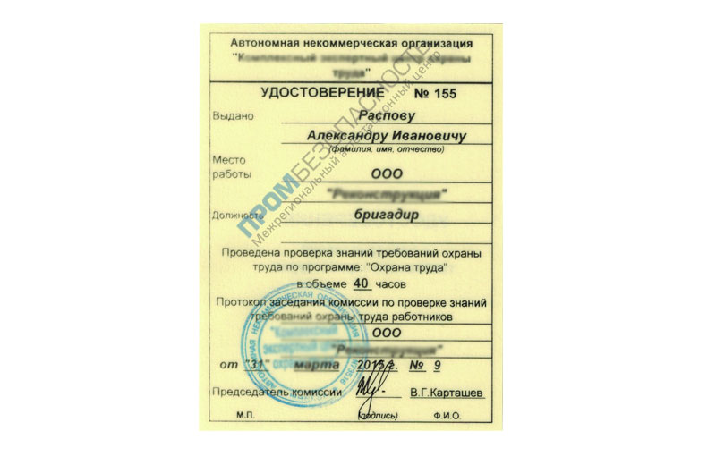 Отвечая на ваш вопрос сообщаем, что удостоверение выдается работнику, успешно прошедшему проверку знаний требований охраны труда. Данное удостоверение подписывается председателем комиссии по проверке знаний требований охраны труда, заверяется печатью организации, проводившей обучение по охране труда и проверку знаний требований охраны труда (форма удостоверения приведена в приложении № 2 к Порядку обучения по охране...